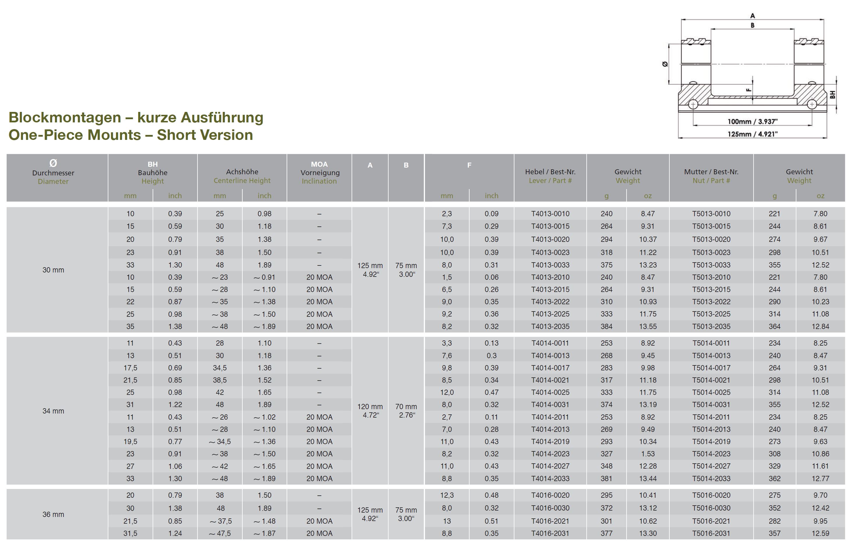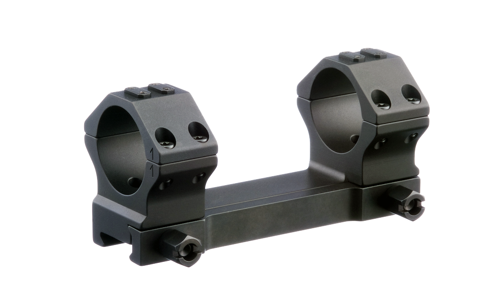 The short version mounts are suited for the use on any type of bolt action rifle, as well as on weapons of the type AR10. The 95 mm long contact surface ensures a secure and play-free fit on every Picatinny rail. Available with 30, 34 and 36 mm rings in 5 different heights, with or without 20 MOA. Locking either with safety levers (series T4) or with hexagonal nuts (series T5).