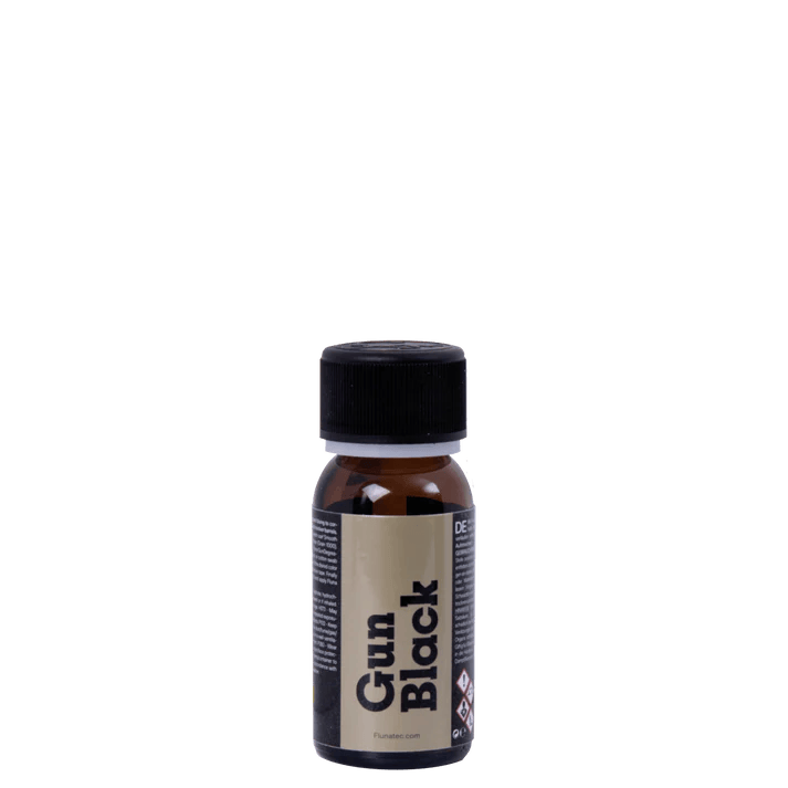 Mit Fluna Gun Black erneuern Sie in wenigen Schritten die beschädigte Brünierung. Kleine Metallteile wie zum Beispiel Schraubenköpfe lassen sich mit der Schnellbrünierung schwärzen und kleinere Flächen erhalten mit Fluna Gun Black die erwünschte Färbung. Durch die einfach anzuwendende Kaltbrünierung wird die Oxidation ungeschützter Stellen am Lauf unterbunden, Ihre Waffe ist nach kurzer Zeit bei jedem Wetter wieder für den Outdoor-Einsatz bereit.