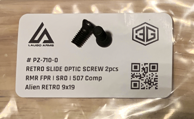 Retro slide optic screws for RMR footprints. Screws will fit for mounting Trijicon SRO or similar to Alien Retro slide. Imperial screws included with Trijicon or similar products from US will not match.